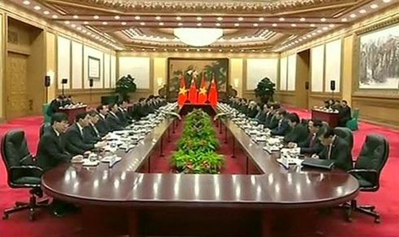 “…thúc đẩy sự phát triển ổn định của quan hệ Trung-Việt v.v… Nguyễn Phú Trọng cho biết Việt Nam hy vọng sẽ tăng cường trao đổi cấp cao, tăng cường tin cậy lẫn nhau về chính trị, tăng cường hợp tác trong các lĩnh vực khác nhau…”