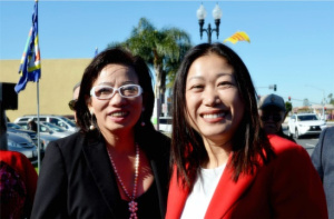 Với Thượng Nghị Sĩ Janet Nguyễn, sau khi chào cờ ngày Mùng 1 tết Đinh Dậu.
