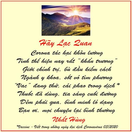 Hãy Lạc Quan Share this:Tweet Click to print (Opens in new window) Print Click to email a link to a friend (Opens in new window) Email Like Loading...