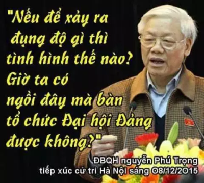 H- Nguyễn Phú Trọng: Tên đảng trưởng với chủ trương qui hàng Tàu cộng , phản quốc và bán nước.