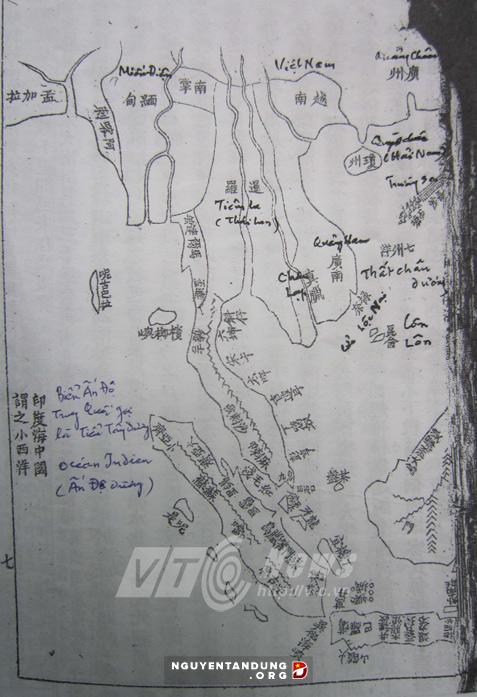Đặc biệt hơn nữa, ở tấm bản đồ in tại trang 40, 41 của cuốn sách này thì bên cạnh việc vẽ bản đồ đường biển Trung Quốc lại có vẽ eo biển Quảng Nam (và ghi rõ là Nam Việt – tức Việt Nam). Bên cạnh eo biển Quảng Nam, bản đồ này còn vẽ đảo Thất Châu Dương – biển Thất Châu (cả khu vực biển đảo Trường Sa, Hoàng Sa – Vạn lý Trường Sa. Nếu theo bản đồ Trung Quốc thì Hoàng Sa, Trường Sa là thuộc biển Thất Châu Dương – một cách gọi tên khác mà người Trung Quốc xưa thường dùng và ghi chú trên bản đồ để chỉ khu vực biển đảo Trường Sa, Hoàng Sa của Việt Nam (không có ghi khu vực biển Thất Châu Dương này thuộc địa giới của Trung Quốc).