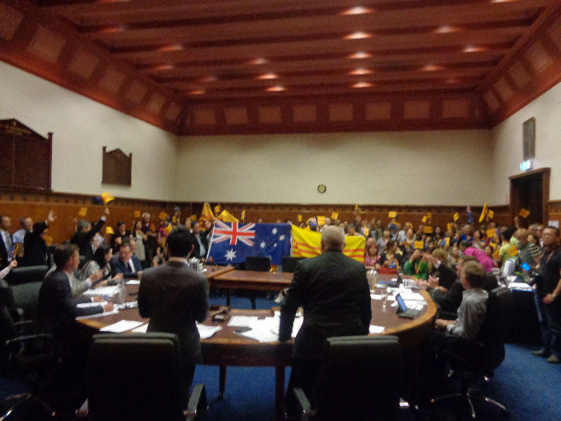 Nghị quyết đã được nhanh chóng thông qua trước sự vui mừng của hằng trăm người tham dự, nhiều người đã phải đứng ngoài phòng họp.