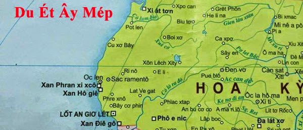 Tôi nhận được tấm bản đồ của nước Mỹ bằng tiếng Việt vào buổi chiều thứ bẩy 04.04.2015 sau ngày Good Friday qua email của một người bạn. Nhìn tấm bản đồ, đọc các địa danh, tôi ngẩn ngơ cả nửa phút đồng hồ vì không tin vào mắt mình. Sau sự ngẩn ngơ tôi bỗng bật cười nhưng nụ cười không kéo dài. Một cảm giác tức giận lẫn chua xót ùa đến. Quên là đứa con trai lớn đang ngồi coi TV gần đó, tôi buột miệng chửi thề:
