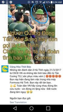 Những người mặc đồng phục màu kaki không phải là quần áo đồng phục của bất cứ ngành nào của VN. Đó là sắc phục của những người Trung Cộng – không rõ là ngành nào – đã thường được nhìn thấy tại Formosa và trên đường phố Hà Tĩnh. Những người này nói chuyện với nhau bằng tiếng Tàu và bằng tiếng Việt lơ lớ khi nói với người Việt.