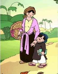 Buổi sáng mai hôm ấy, một buổi mai đầy sương thu và gió lạnh. Mẹ tôi âu yếm nắm tay tôi dẫn đi trên con đường làng dài và hẹp. Con đường này tôi đã quen đi lại lắm lần, nhưng lần này tự nhiên tôi thấy lạ. Cảnh vật chung quanh tôi đều thay đổi, vì chính lòng tôi đang có sự thay đổi lớn: Hôm nay tôi đi học.